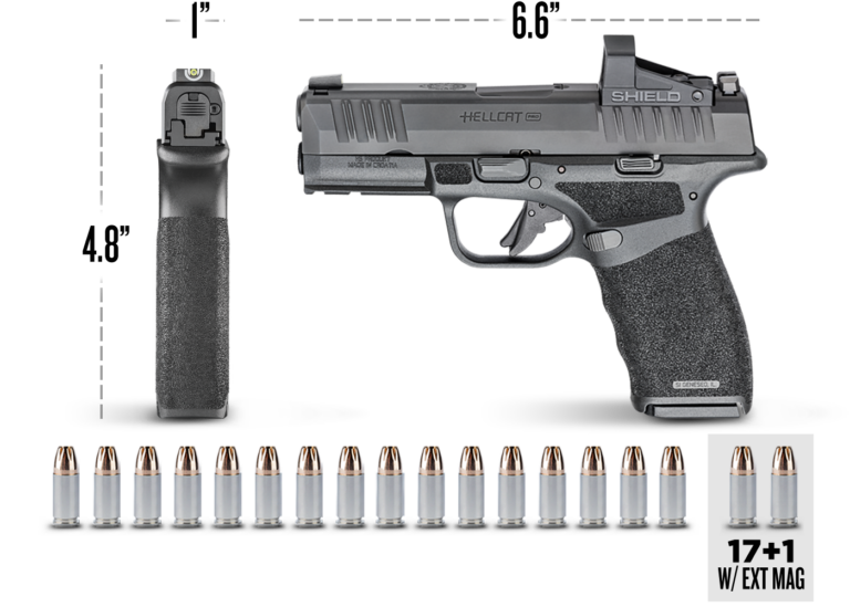 Basada en la exitosa plataforma de la Hellcat® original, la Hellcat® Pro cuenta con numerosos reconocimientos y premios en el mundo de las pistolas EDC. Con su combinación de rendimiento, capacidad y portabilidad, es una elección segura para quienes buscan confianza y excelencia en cada disparo.