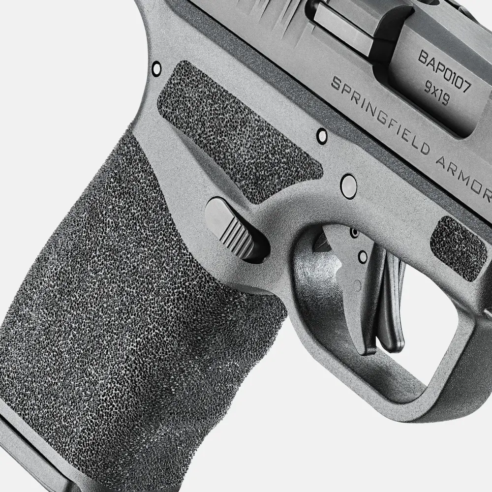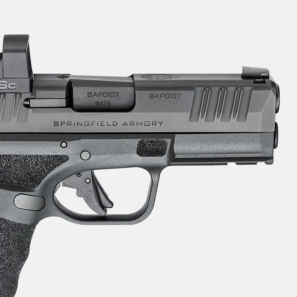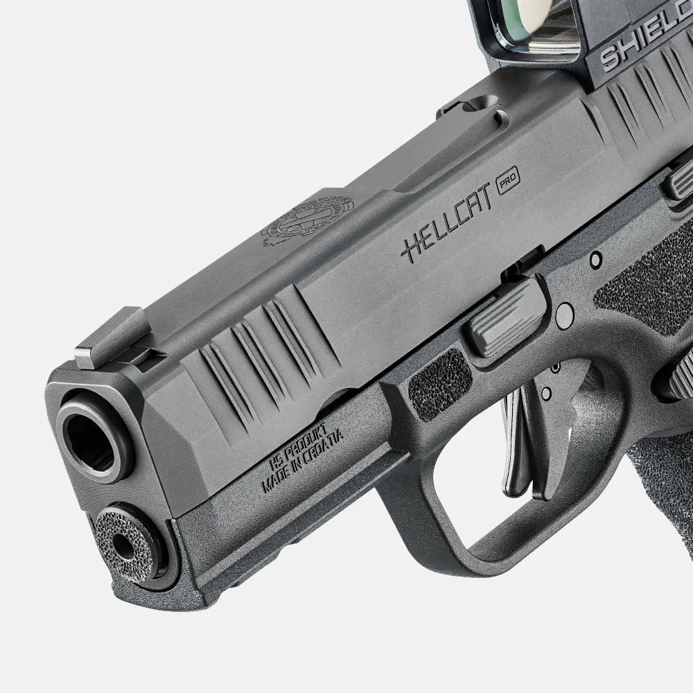 La Hellcat® Pro está diseñada para el uso de miras ópticas, incorporando una configuración OSP™ (Optical Sight Pistol). Su corredera fresada con la huella Springfield Micro™ es compatible con las ópticas micro más populares del mercado, como HEX™ Wasp y Shield RMSc.